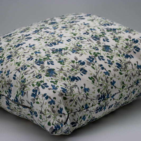 Putetrekk 50 x 50 hvit med blå/grå/grønne blomster