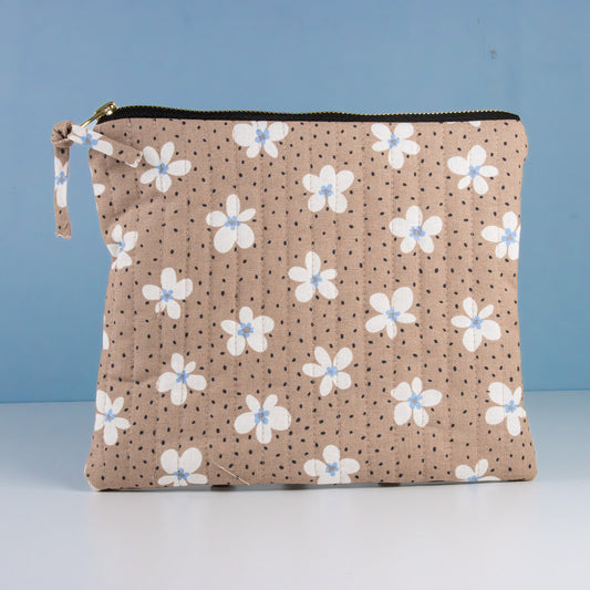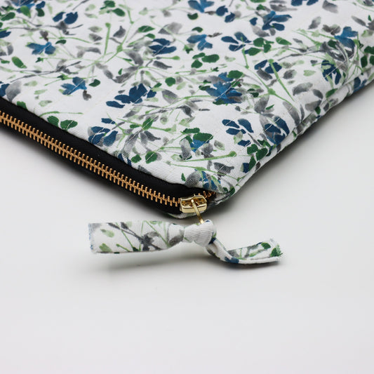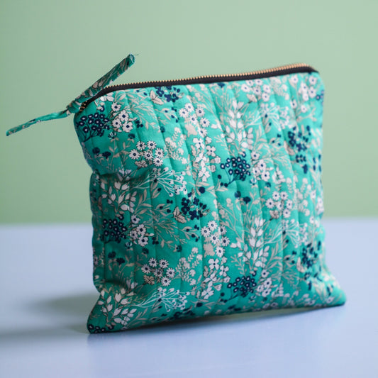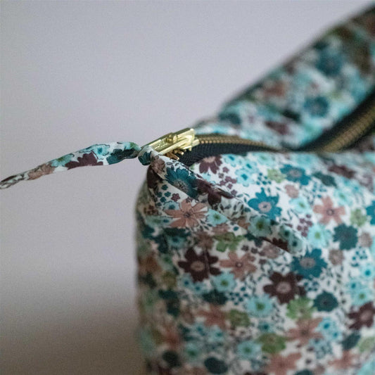 Quiltet clutch hvit med blå/grå/grønne blomster