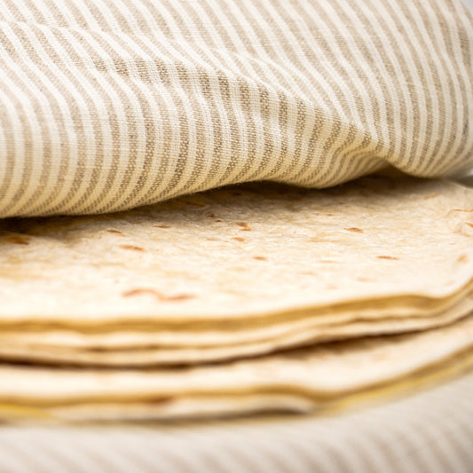 Lefsevarmer lin natur med striper